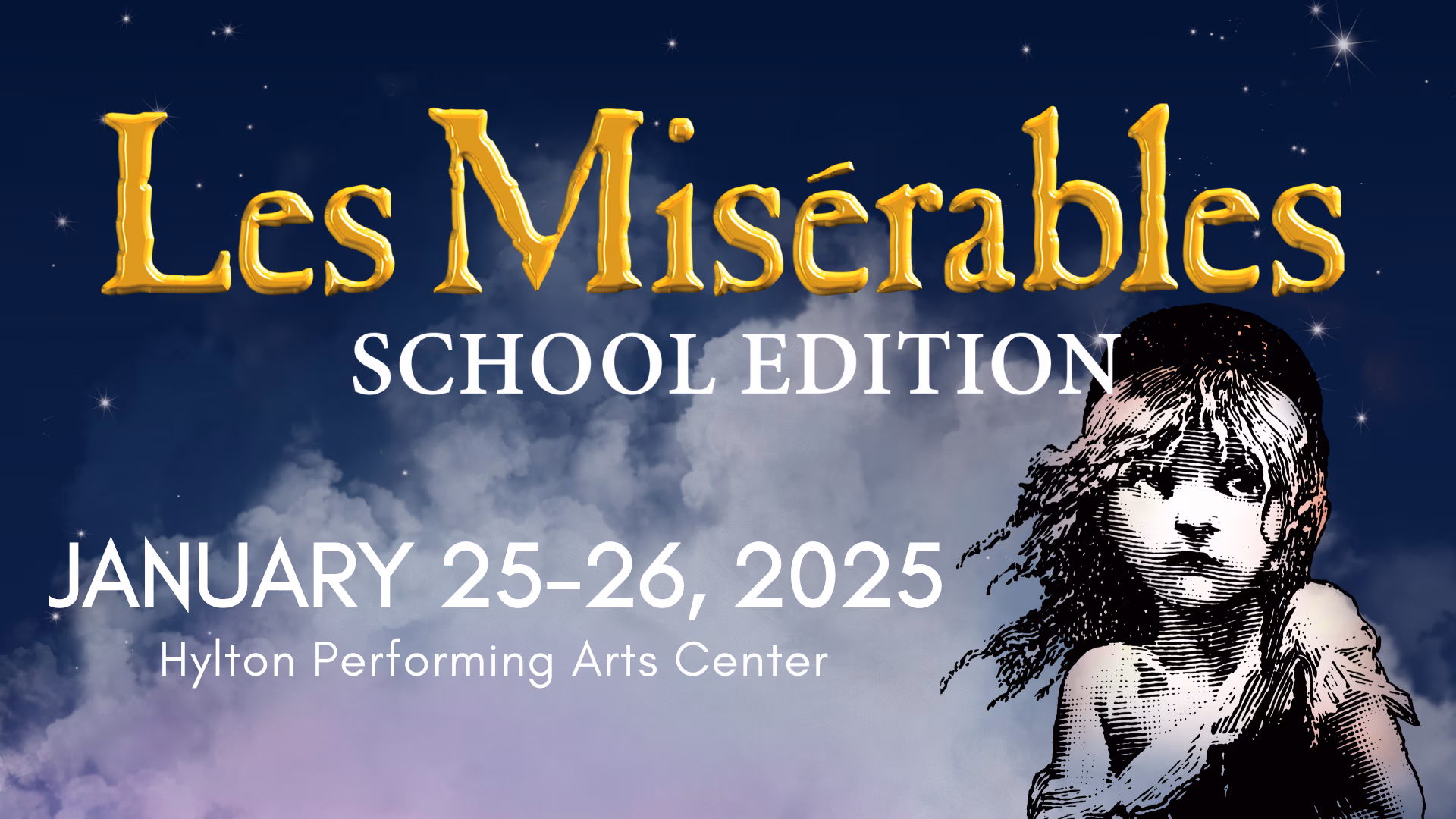 Participation in Les Miserables is through audition only. Auditions will be held October 15 from 5-9 at the ARTfactory, October 16 from 5-9 PM at Metz Middle in Manassas, and October 17 from 5-9 PM at Hylton Performing Arts Center. Rehearsals will begin on October 21, running Mondays, Wednesdays, and Saturdays until show opening, with tech week starting January 19. Show dates are January 24, 25, and 26. All cast and production members will receive two complimentary tickets.