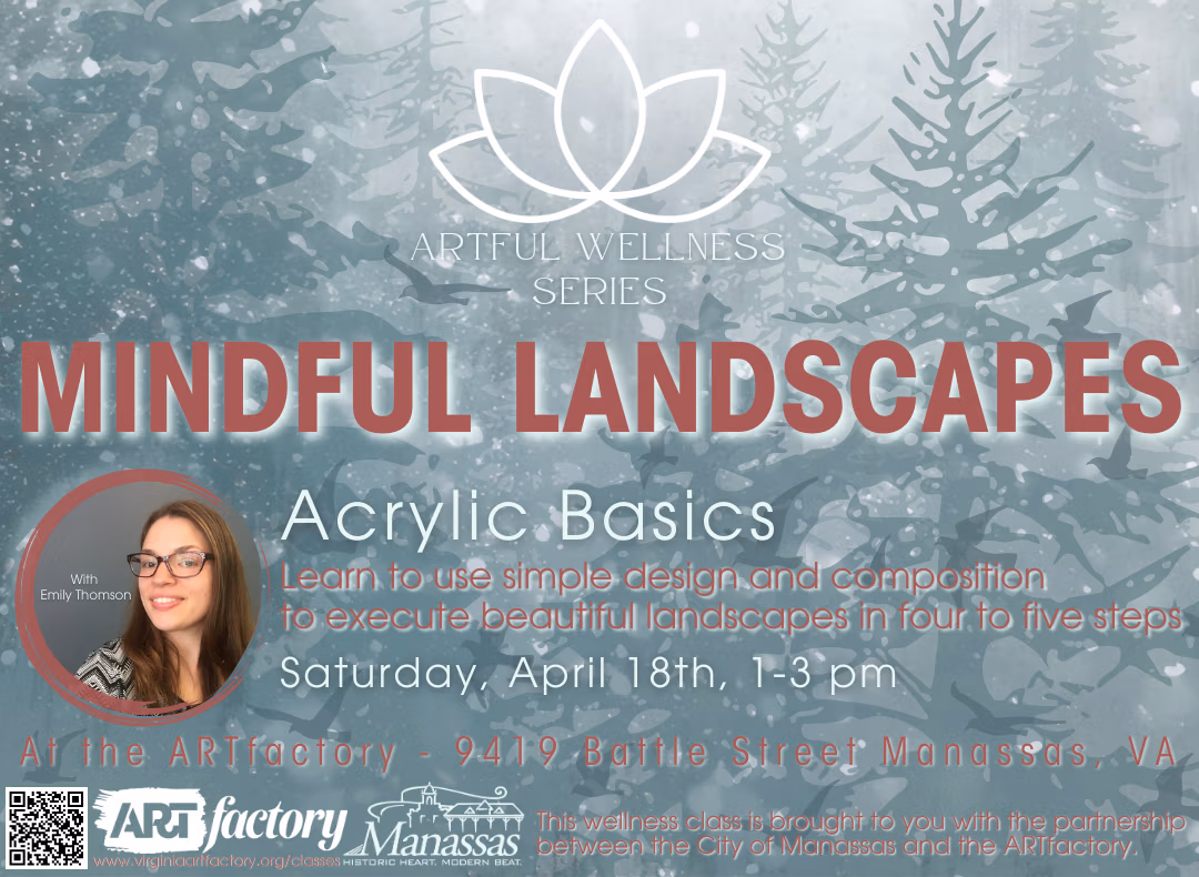 City of Manassas Community Center 8750 Sudley Rd, Manassas, United States2026 is the year to focus on your mental and physical health, and this Wellness series is the perfect place to start! Come and paint a beautiful landscape scene using […]