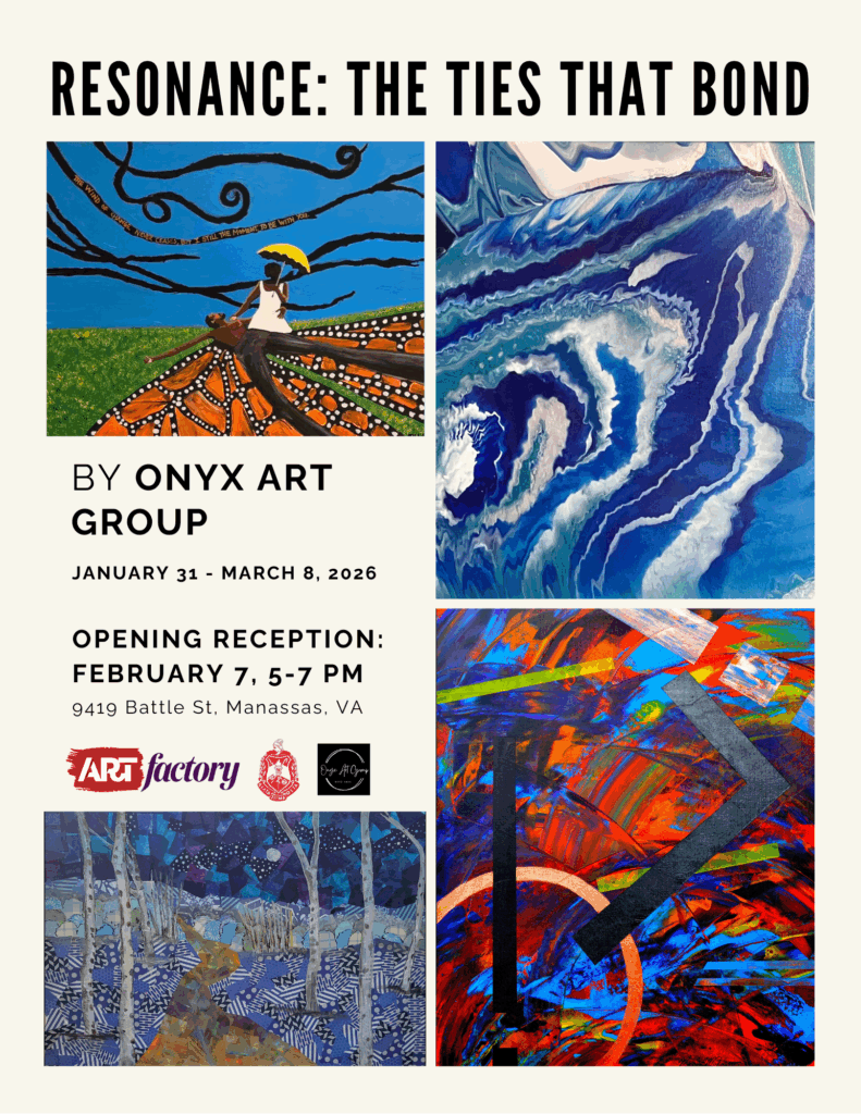 The public is warmly invited to an Opening Reception on Saturday, February 7, from 5–7 PM, hosted by the Prince William County Alumnae Chapter of Delta Sigma Theta Sorority, Inc. Guests will have the opportunity to meet the artists, experience the exhibition firsthand, enjoy live music, and celebrate the collective’s continued dedication to artistic dialogue.