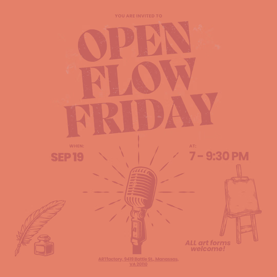 ARTfactory 9419 Battle Street, Manassas, VA, United StatesOpen Flow Friday at the ARTfactory