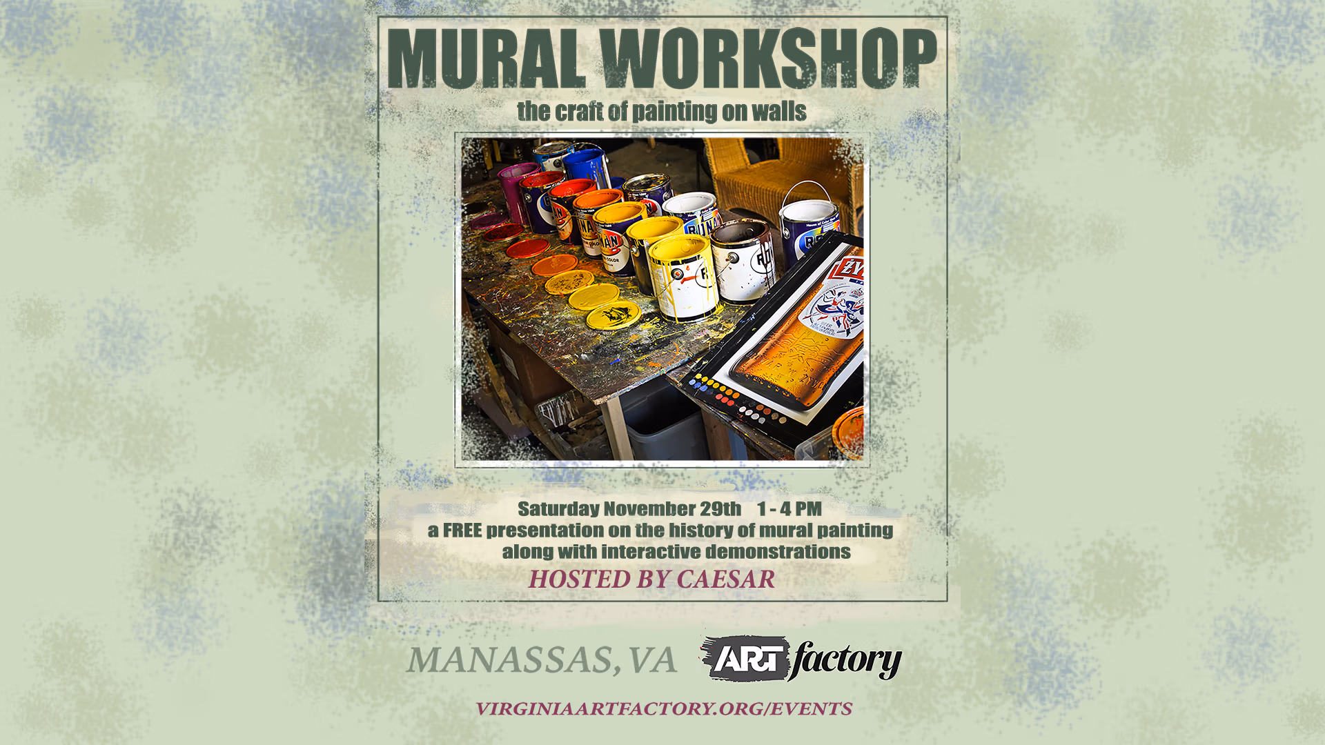 Join us for a free one day seminar which will explore the history, relevance and techniques of painting Murals. Hosted by Caesar, a professional artist based in Northern VA who […]