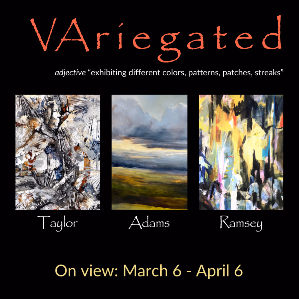 Group Art Exhibit featuring work by Patricia Taylor Holz, Nancy Ramsey, and Caroline Adams